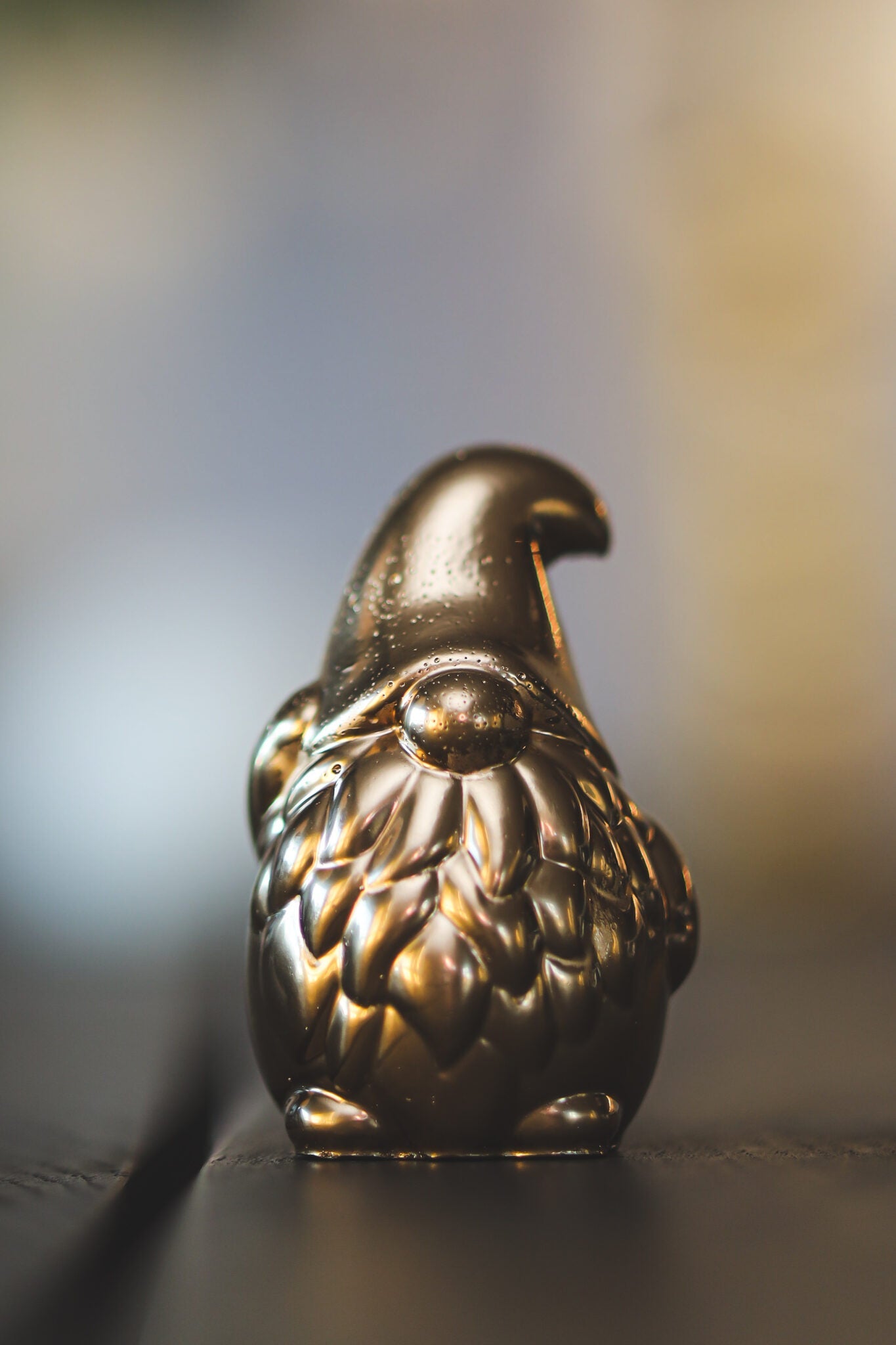 Gylltur steyptur jólasveinn.