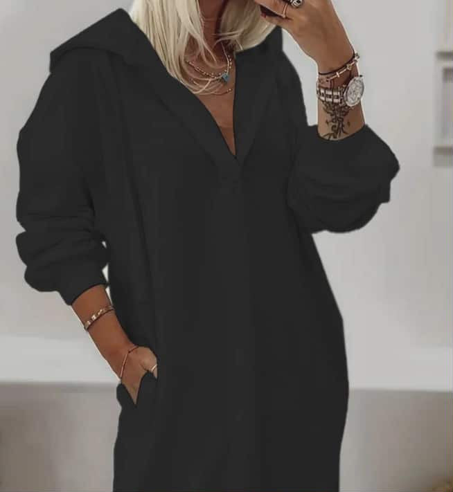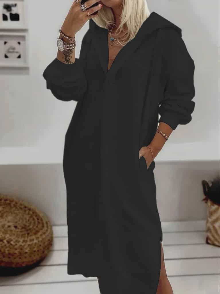 Síð og smart hettupeysa með vösum